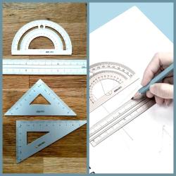 OMENİV'DEN METAL ALÜMİNYUM CETVEL GÖNYE AÇI ÖLÇER 4 PARÇA SET MASAÜSTÜ AKSESUAR
