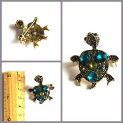 OMENİV'DEN VİNTAGE TARZ MİNİK KAPLUMBAĞA BROŞ İĞNE KRİSTAL DETAYLAR