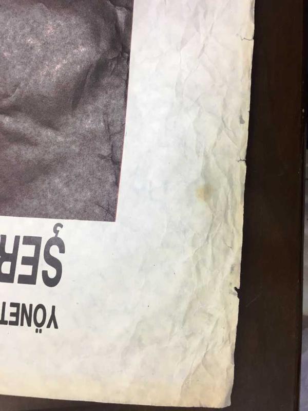 Sattığımız afiş / posterler dönemine ait orijinal ürünlerdir. Fotoğraflarda kondisyonları görebilirsiniz., Kondisyonlar temiz durumdadır. Aksi bir durum olduğunda ilave fotoğraf ve bilgi yer alacaktır. Kondisyon: Kenarlarda çok hafif kırışıklıklar vardır. Genel durumu temiz.
