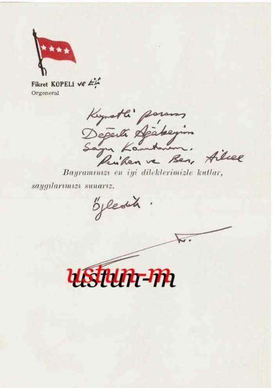 ORGENERAL FİKRET KÜPELİ İMZALI TEBRİK YAZISI..., en son 5 ay önce güncellenmiştir.