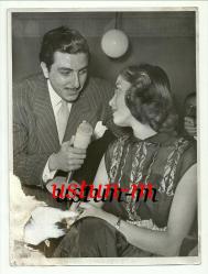 ** ORHAN BORAN VE GÜNSELİ BAŞAR FOTOĞRAFI ** 24 x 18 cm.ebadında,arkasında sanatçıların adları yazılı olan, sağ altta biraz korozyonu olan onun dışında gayet de iyi kondüsyonda orijinal fotoğraftır... Günseli Başar 1952 Avrupa güzelidir...