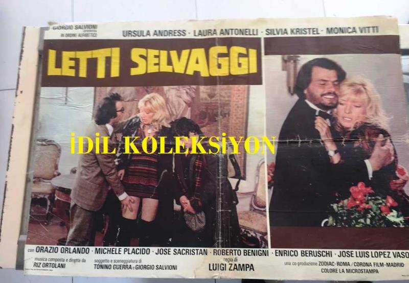 ORİJİNAL BEZ SİNEMA AFİŞİ - Dört Sıcak Yatak, (LETTI SELVAGGI) 1979, BEZ FİLM AFİŞİ / POSTERİ - BÜYÜK BOY - ORİJİNAL - 66 X 45 cm EBADINDA - Original Turkish Big Size Movie Poster - Luigi Zampa, Luis Castro, Tonino Guerra, Giorgio Salvioni, Ursula Andress, Laura Antonelli, Sylvia Kristel, Monica Vitti, Orazio Orlando, Michele Placido, José Sacristán, Roberto Benigni, Enrico Beruschi, José Luis López Vázquez,
