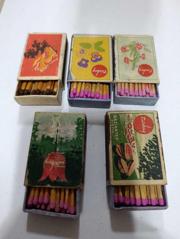 ORİJİNAL DÖNEM ÜRÜNÜ KOLEKSİYONLUK 5 ADET KİBRİT başlıklı antika/koleksiyon objesinin menşei belirtilmemiştir. 1940 sonrası dönemine aittir.