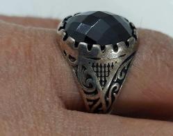 ORTA DÖNEM SANATSAL MOTİFLİ OBSİON KRİSTAL SİYAH TAŞLI MUHTEŞEM ORİJİNAL GÜMÜŞ YÜZÜK 3T2BBR ÇOK NADİR