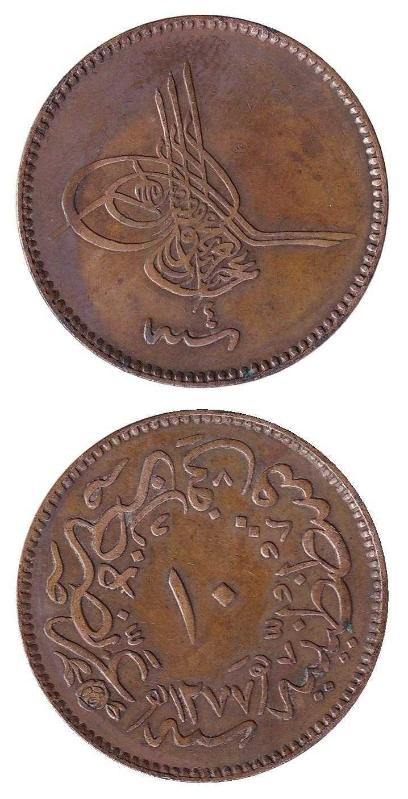Sultan Abdülaziz, 10 Para 1277/4 ÇT/ÇÇT Eski Osmanlı Bakır Madeni Para Ülke Osmanlı İmparatorluğu Periyod Sultan Abdülaziz (1861 - 1875) Para Birimi Osmanlı Lirası Para tipleri Tedavül madeni paralar Değeri 10 Para Yıl AH 1277 (1861) - ١٢٧٧ Hükümdar Abdülaziz Malzeme detayları Bakır Kenar Düz Şekli Yuvarlak Hizalama Madalya hizalaması (0°) Ağırlık (g) 5,16 Çap (mm) 27,5 Kalınlık (mm) 1