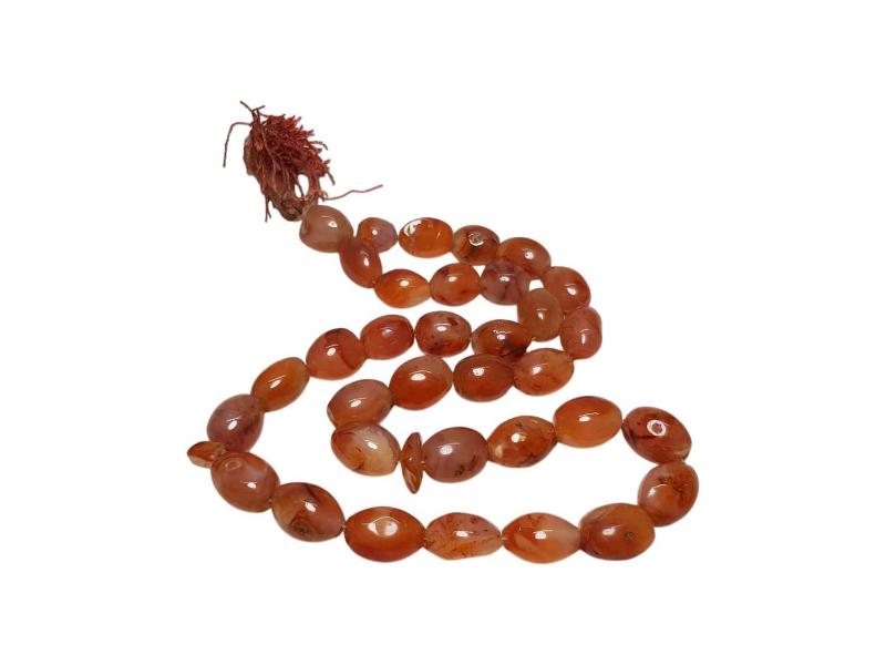 OSMANLI DÖNEMİ AKİK TAŞTAN MAMÜL 33'LÜK TESPİH. UZUNLUK: 25 CM HABBE EBADI ORTALAMA: 1,2 X 0,9 CM