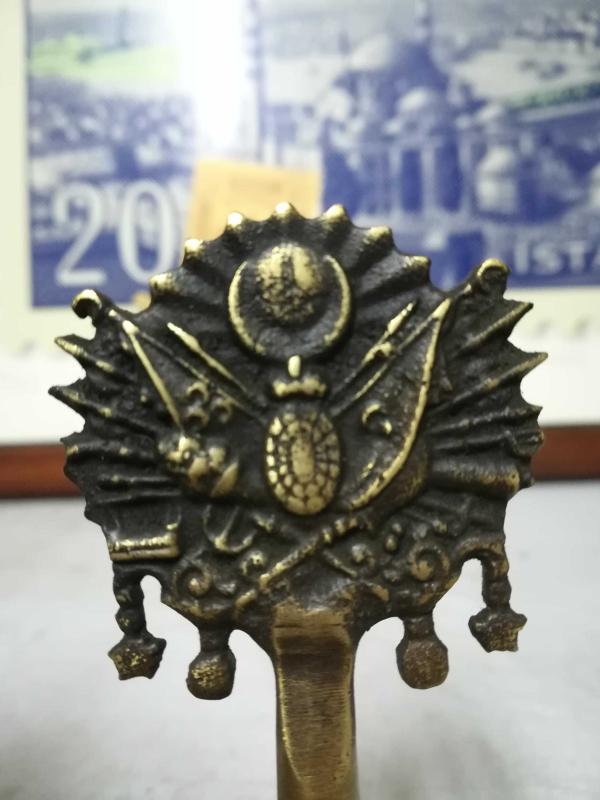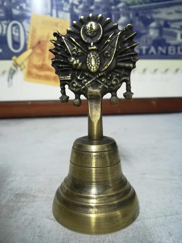 PİRİNÇ MADENİ TOK BİR ZİLDİR. İŞÇİLİĞİ ÇOK İYİDİR. OSMANLI ARMALIDIR. YANINDA MEZURE İLE RESİMİ MEVCUTTUR.