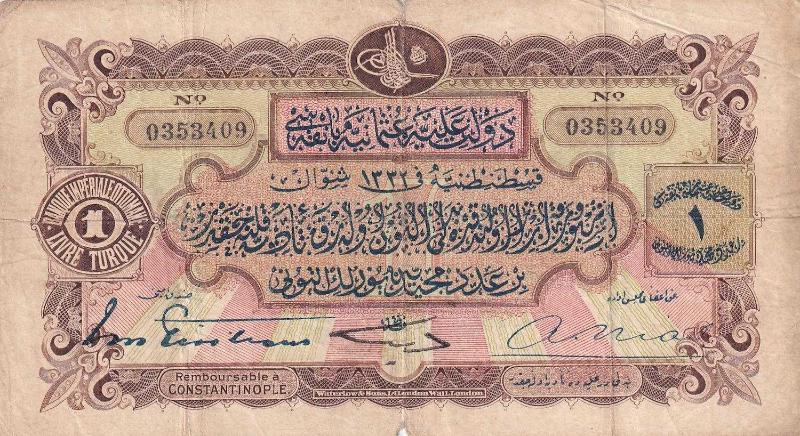 OSMANLI BANKASI 6. EMİSYON 1 LİRA T+ başlıklı ürün, Efemera, Müzik, Sinema > Nümismatik, Para, Madalya > Kağıt Paralar > Osmanlı Dönemi > V. Mehmed Reşad kategorisi altında İkinci El olarak satılmaktadır.