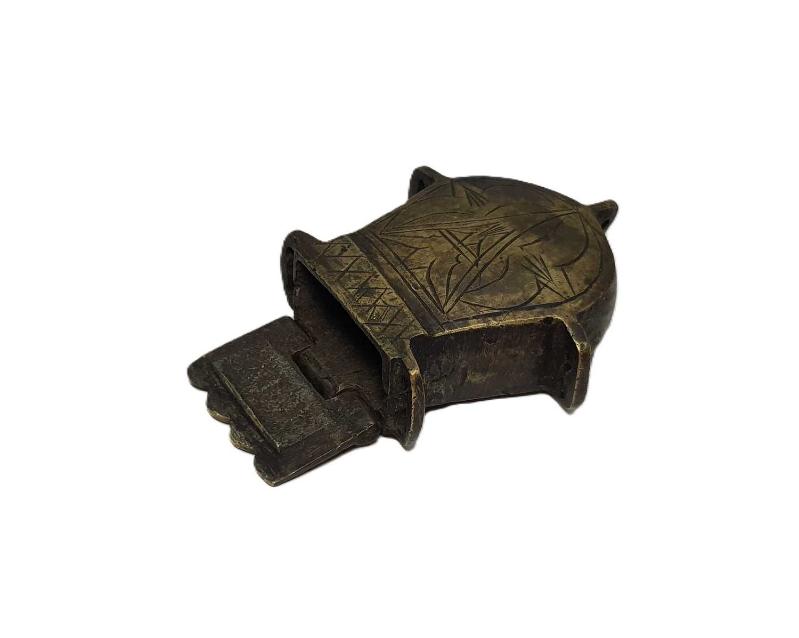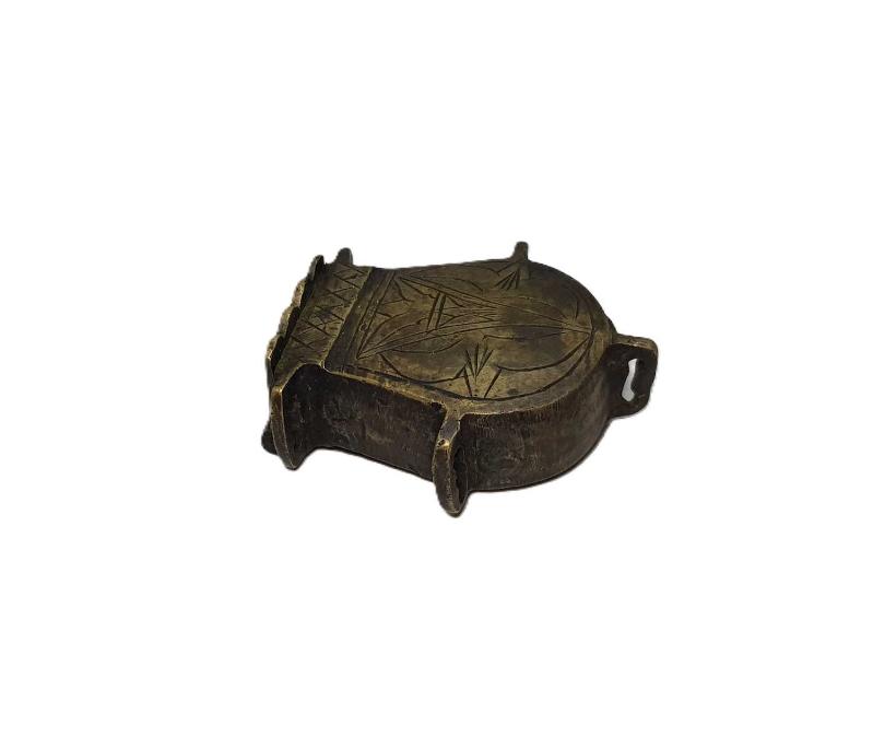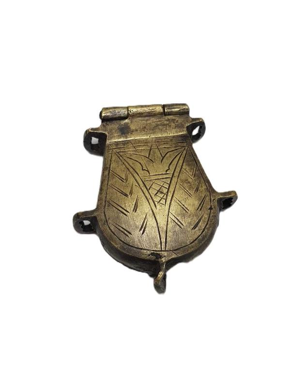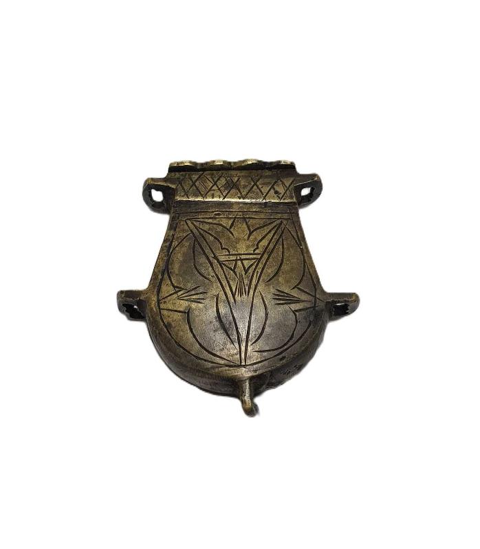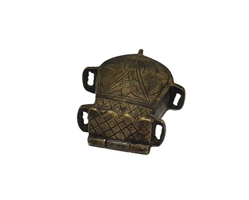 OSMANLI DÖNEMİ SÜLEYMANİYE İŞİ, PİRİNÇTEN MAMÜL, ÜZERİ EL KAZIMA FLORAL VE GEOMETRİK DESENLERLE SÜSLÜ TÜFEK ÇAPUTLUĞU. EBAT: 6,7 X 6 CM