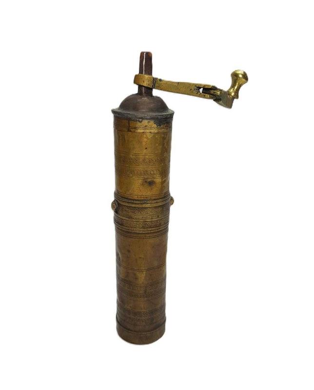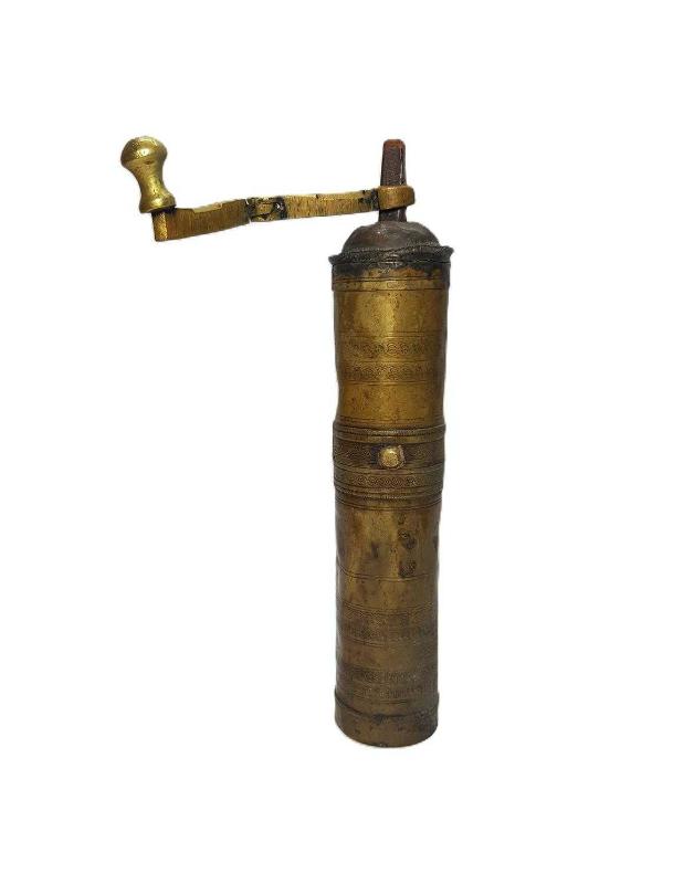 OSMANLI DÖNEMİ SÜLEYMANİYE İŞİ PİRİNÇ KAHVE DEĞİRMENİ. ÇALIŞIR DURUMDADIR. YÜKSEKLİK: 24,5 CM