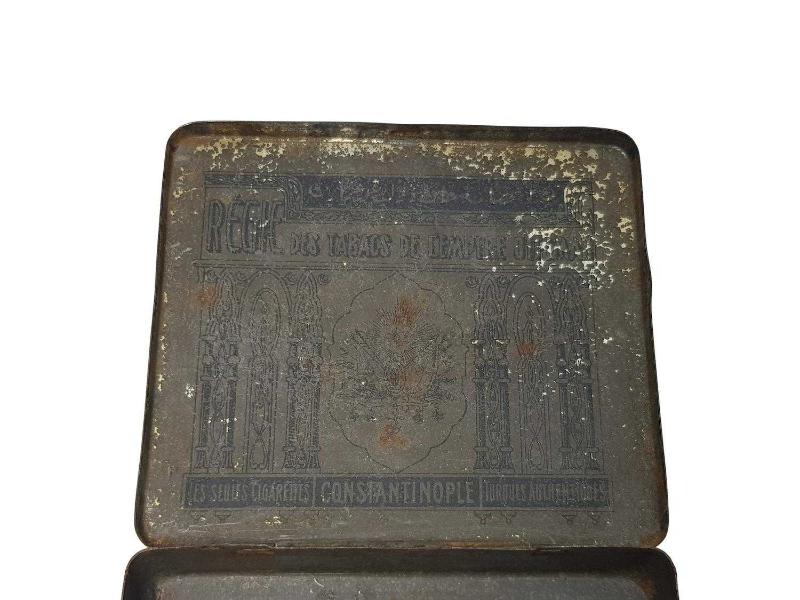 OSMANLI DEVLET ARMALI TÜRK SİGARASI İNHİSARI SİGARA KUTUSU başlıklı antika/koleksiyon objesi Osmanlı menşe’lidir. 1900-1919 arası dönemine aittir.