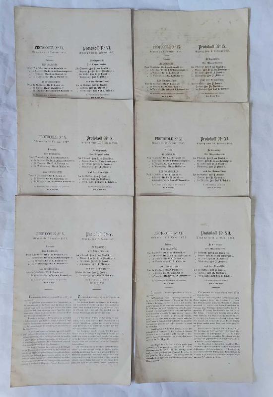 Kitap 1857 yılında yayınlanmıştır. OSMANLI DEVLETİ PROTOKOLLERİ, Almanya ve Balkan Ülkeleri, 1857, Protocole No: V, VI, IX, X, XI, XII / Protocole No: 5, 6, 9, 10, 11, 12 [6 ADET] adlı eser Fransızca dilindedir. Eserin içeriğinde Almanca dilinde bölümlere de yer verilmektedir.