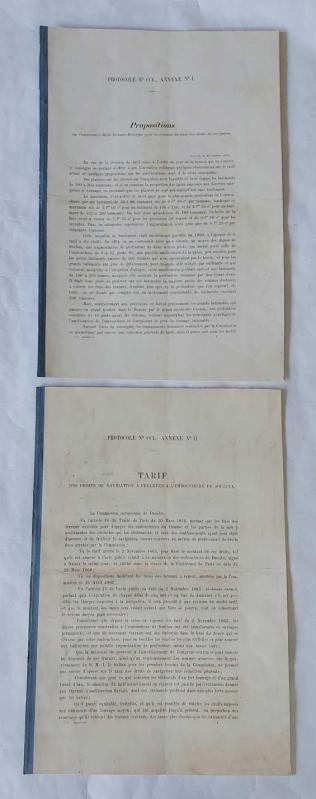 OSMANLI DEVLETİ PROTOKOLLERİ, Protocole No: CCL., Annexe No: I - II / No 1: Propositions du Commissaire du la Grande-Bretagna pour la revision du tarif des droits de navigation. No 2: Tarif des droits de navigation a prelever a l'embouchure de Soulina [Büyük Britanya ile İlgili Harç Tarifeleri] 2 ADET] adlı eser, Kitap > Tarih > Osmanlı Tarihi kategorisinde İkinci El olarak satıştadır.