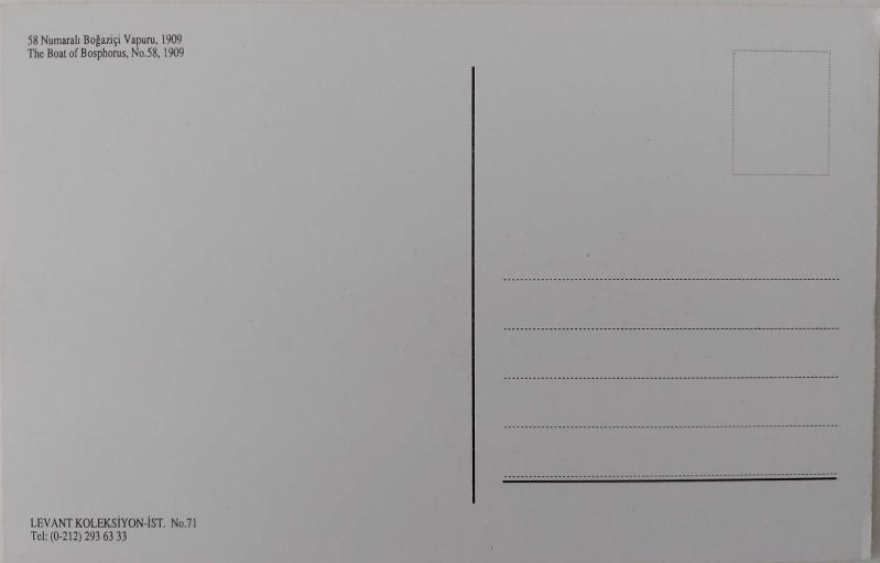 OSMANLI DÖNEMİ 58 NUMARALI BOĞAZİÇİ VAPURU KARTPOSTALIDIR. KARTPOSTALI LEVANT KOLEKSİYON TARAFINDAN YAPILMIŞ. EBATI;9X14 CM DİR. ÇOK ÖZEL VE NADİR KARTPOSTALLERDENDİR. RESMİNİ GÖRDÜĞÜNÜZ ÜRÜN AYNEN GÖNDERİLİR. DİĞER TIRI VIRI ÜRÜNLERLE KARIŞTIRMAYINIZ. UYGUN FİYATLA SATIŞA SUNULMUŞTUR. TÜM ÜRÜNLERİMİZE BAKMANIZ MENFAATİNİZEDİR. SAYGILARIMIZLA.