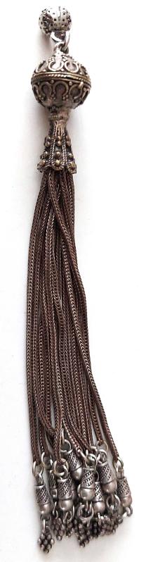 OSMANLI DÖNEMİ ANTİK MUHTEŞEM GÜMÜŞ MÜTHİŞ KAKMA MOTİF İŞLEMELİ SARAYSAL TESPİH PÜSKÜLÜ 1RRR1A1A1 PEK ÇIKMAZ başlıklı antika/koleksiyon objesi Osmanlı menşe’lidir. 1900 öncesi dönemine aittir.