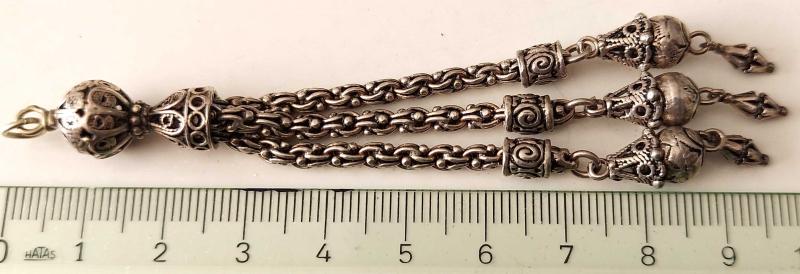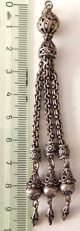 OSMANLI DÖNEMİ ANTİK MUHTEŞEM GÜMÜŞ MÜTHİŞ MOTİF İŞLEMELİ SARAYSAL TESPİH PÜSKÜLÜ 1R1R1A1 PEK ÇIKMAZ başlıklı antika/koleksiyon objesi Osmanlı menşe’lidir. 1900-1919 arası dönemine aittir.