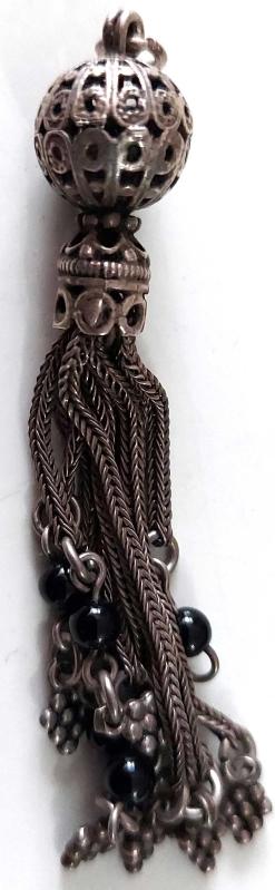 OSMANLI DÖNEMİ ANTİK MUHTEŞEM GÜMÜŞ MÜTHİŞ MOTİF İŞLEMELİ SARAYSAL TESPİH PÜSKÜLÜ VVV1W2 PEK ÇIKMAZ başlıklı antika/koleksiyon objesi Osmanlı menşe’lidir. 1900 öncesi dönemine aittir.