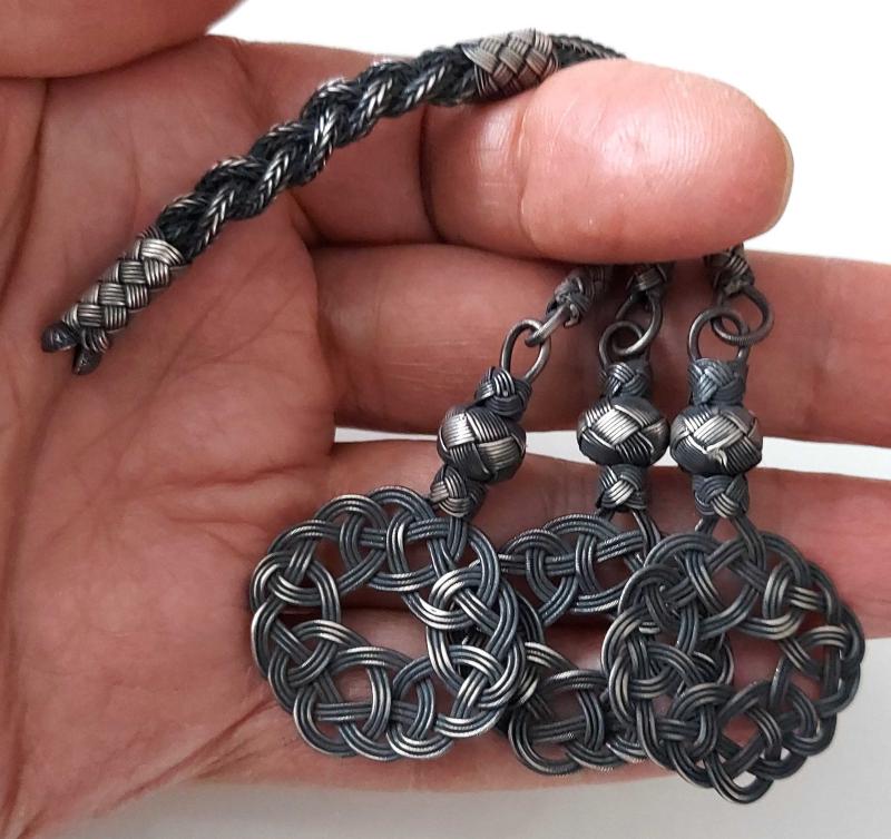 OSMANLI DÖNEMİ ANTİK MUHTEŞEM GÜMÜŞ SARAYSAL KAZAZ ÖRGÜLÜ TESPİH PÜSKÜLÜ 6K1ŞŞŞ1 PEK ÇIKMAZ başlıklı antika/koleksiyon objesi Osmanlı menşe’lidir. 1900-1919 arası dönemine aittir.