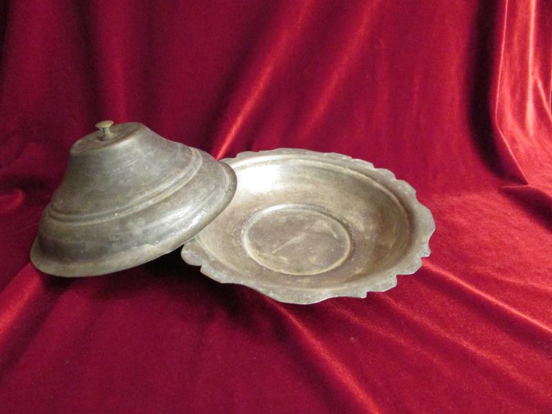 OSMANLI DÖNEMİ ANTİKA BAKIR PİLAVLIK DA DENİLEN KAPAKLI YEMEK KABI 350 başlıklı antika/koleksiyon objesi Osmanlı menşe’lidir. 1900-1949 arası dönemine aittir.