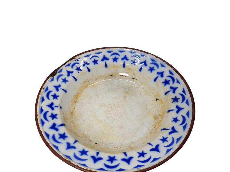 OSMANLI DÖNEMİ AY YILDIZLI EMAYE TABAK başlıklı antika/koleksiyon objesi Osmanlı menşe’lidir. 1900-1919 arası dönemine aittir.
