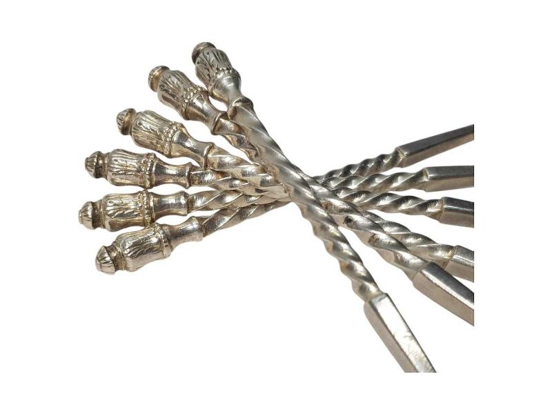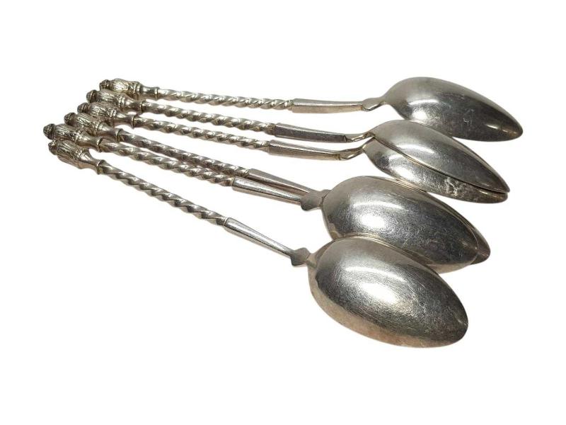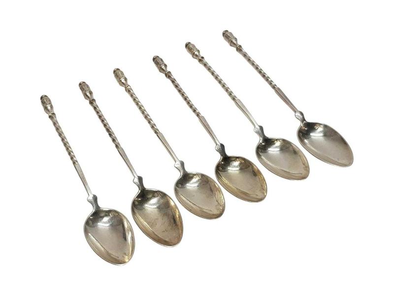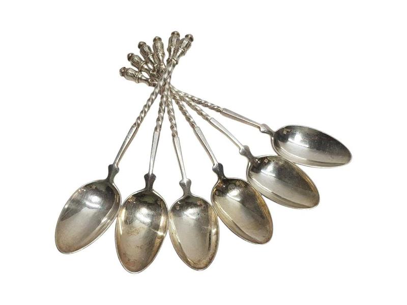 OSMANLI DÖNEMİ İSTANBUL'DA YAŞAYAN ÜNLÜ TÜCCAR "DECUGİS" DAMGALI GÜMÜŞ KAPLAMA 6 ADET ÇAY KAŞIĞI. UZUNLUK: 13,5 CM