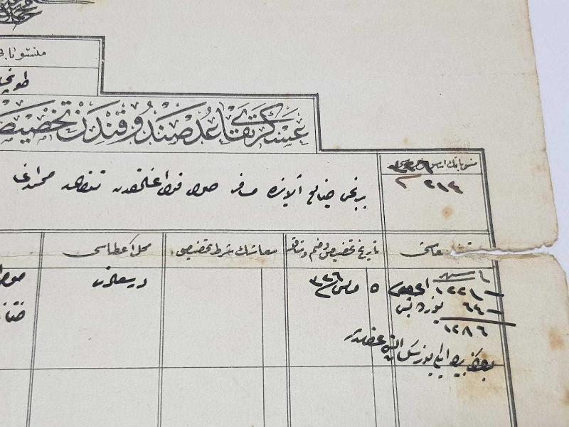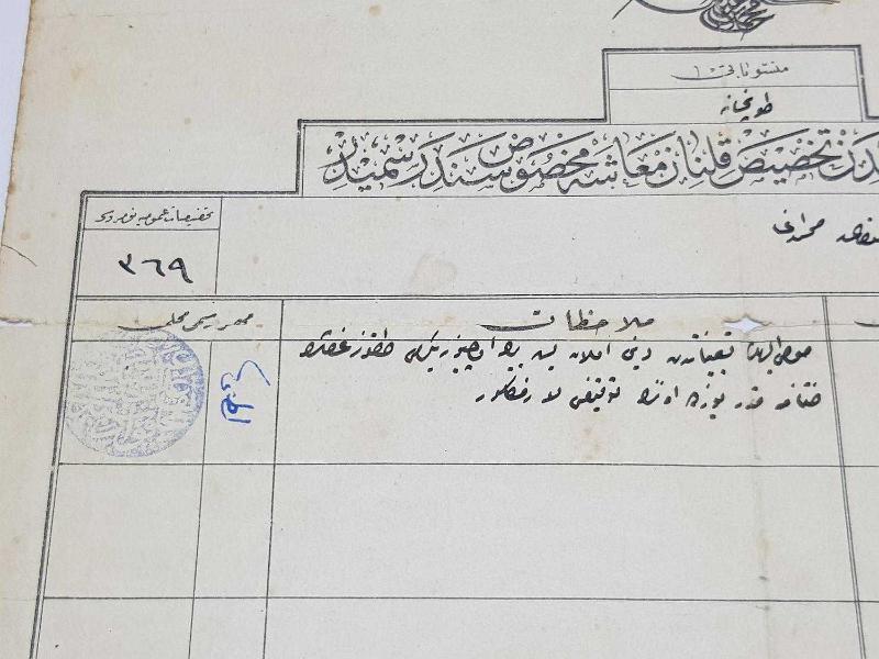 ASKERİ TEKAÜT SANDIKINDAN TAHSİS KILINAN MAAŞA MAHSUS SENEDİ RESMİYEDİR. 1326 (1910)