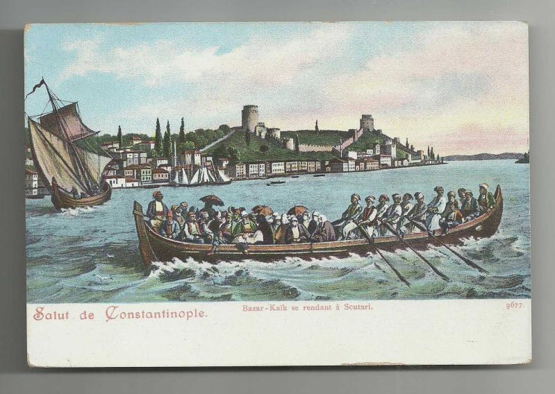 ** OSMANLI DÖNEMİ İSTANBUL / ÜSKÜDAR'A GİDEN PAZAR KAYIĞI KARTPOSTALI ** 14 x 9 cm.ebadında,arkası yazısız,fonda Rumelihisarı görüntülü,Üsküdar'a pazara gidenlerin kullandığı dolmuş kayık diyebileceğimiz dönem ulaşım aracının orijinal kartpostalıdır...