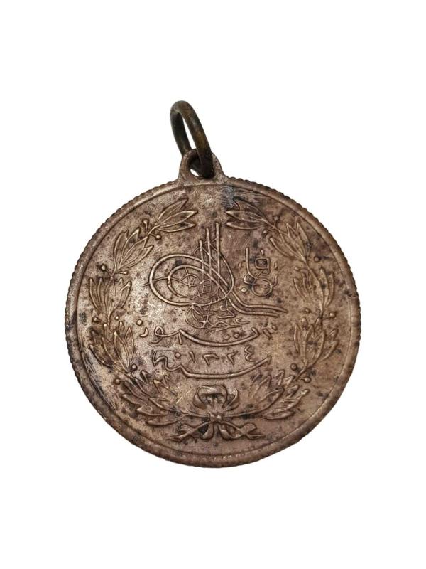 2. MEŞRUTİYET DÖNEMİ ÇOK YÜKSEK KONDİSYONDA BRONZ MADALYA. ÖN YÜZÜNDE; ORTADA OSMANLI DEVLET ARMASI, ÜST KISMINDA KANUNU ESASİ YADİGARI, ALT KISMINDA 11 TEMMUZ 1324 YAZISI, ARKA YÜZÜNDE; ÇELENK İÇİNDE TUĞRA VE 10 TEMMUZ SENE 1324 YAZISI BULUNMAKTADIR. ÇAP: 2,8 CM