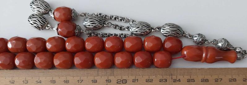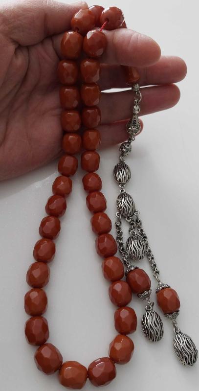 OSMANLI DÖNEMİ MALZEMEDEN YAPILMA ŞIKIR ŞIKIR HARİKA ÇOK KÖŞELİ KARANFİL RENKLİ GÜMÜŞ PÜSKÜLLÜ İKİ YEDEK DANELİ MUHTEŞEM SIKMA KEHRİBAR TESPİHTİR. RENK ALMAYA BAŞLAMIŞTIR. ORİJİNALLİK TESTİ YAPILMIŞTIR. İLERİDE BULUNMASI VEYA ALINMASI ÇOK ZOR OLACAK TESPİHLERDENDİR. MALZEMESİ OSMANLI DÖNEMDİR. PÜSKÜLÜ ORTA DÖNEMDİR. YAPIMI 60-70 YILLIKTIR. TAKLİDİ TESPİHLERLE KARIŞTIRMAYINIZ. HER TÜRLÜ TETKİK VE İNCELEMESİ YAPILMIŞTIR. İMAMELİ BOYU;27,5CM DİR. DANE ÇAPI;1,3X1,1CM DİR. AĞIRLIĞI;105,8 GRAMDIR. UYGUN FİYATLA SATIŞA SUNULMUŞTUR. DİĞER TIRI VIRI ÜRÜNLERLE KARIŞTIRMAYINIZ. RESMİNİ GÖRDÜĞÜNÜZ ÜRÜN AYNEN GÖNDERİLİR. TÜM ÜRÜNLERİMİZİ İNCELEYE BİLİRSİNİZ. SAYGILARIMIZLA.