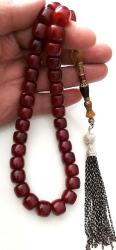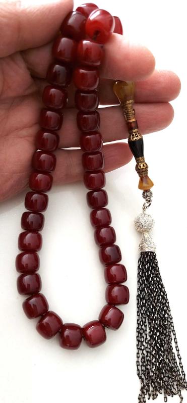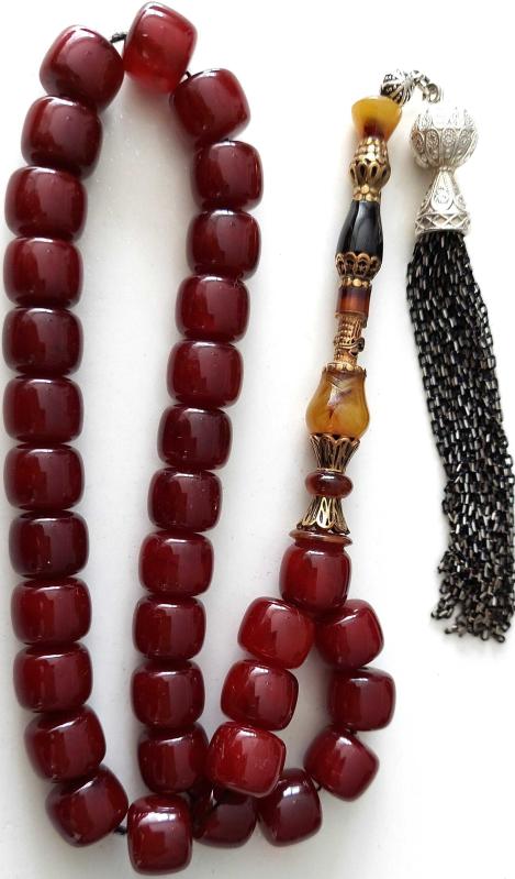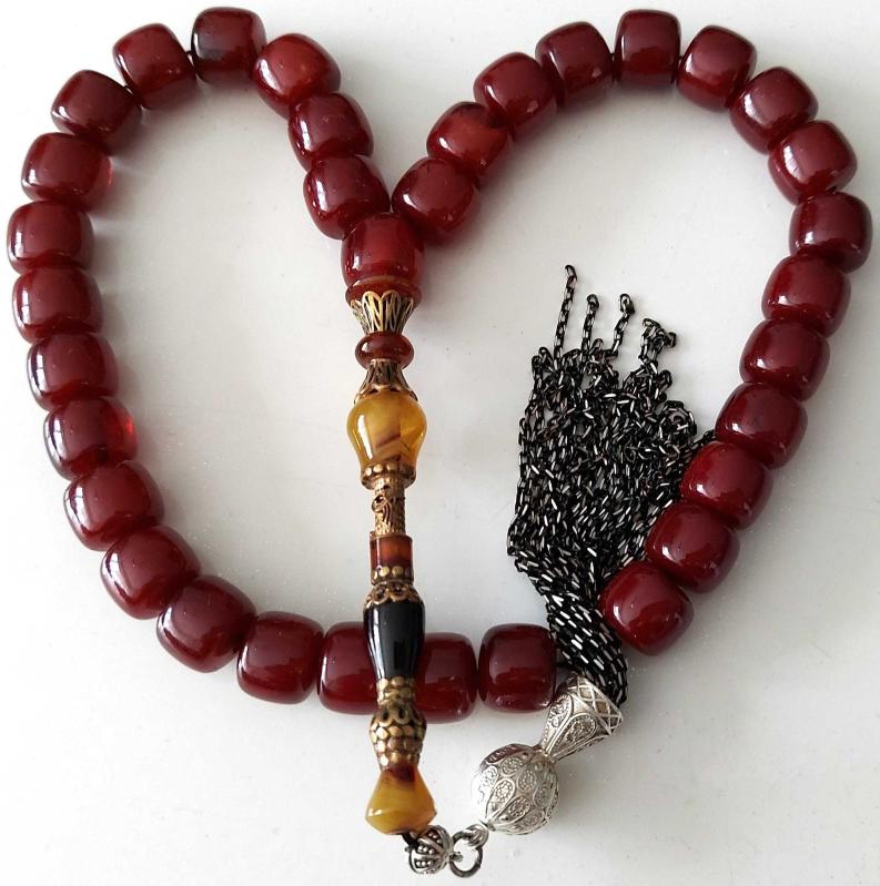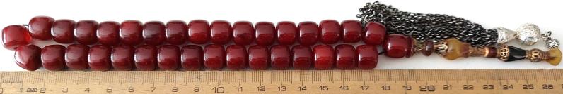 OSMANLI DÖNEMİ MALZEMEDEN YAPILMA ŞIKIR ŞIKIR HARİKA DUMANLI KIRMIZI RENKLİ GÜMÜŞ PÜSKÜLLÜ MUHTEŞEM SIKMA KEHRİBAR TESPİH 1QQQ1R1 ÇOK NADİR başlıklı antika/koleksiyon objesinin menşei belirtilmemiştir. 1900-1949 arası dönemine aittir.