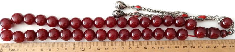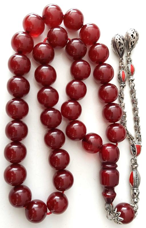 OSMANLI DÖNEMİ MALZEMEDEN YAPILMA ŞIKIR ŞIKIR HARİKA KIRMIZI RENKLİ GÜMÜŞ PÜSKÜLLÜ MUHTEŞEM SIKMA KEHRİBAR TESPİH 1DDD2RA1 ÇOK NADİR başlıklı antika/koleksiyon objesinin menşei belirtilmemiştir. 1960-1979 arası dönemine aittir.