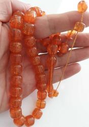 OSMANLI DÖNEMİ MÜCEVHER KUTUSUNDAN YAPILMA KOYU PEMBE SİMLİ MUHTEŞEM SIKMA KEHRİBAR TESPİH SS1İİ1M1 ÇOK NADİR