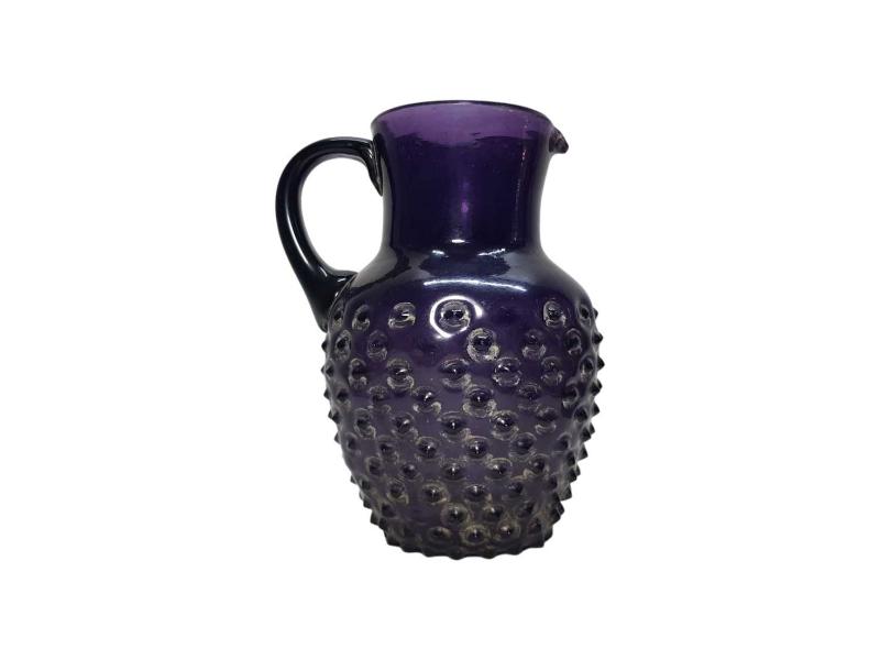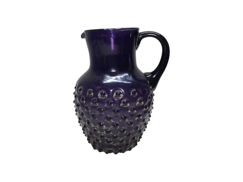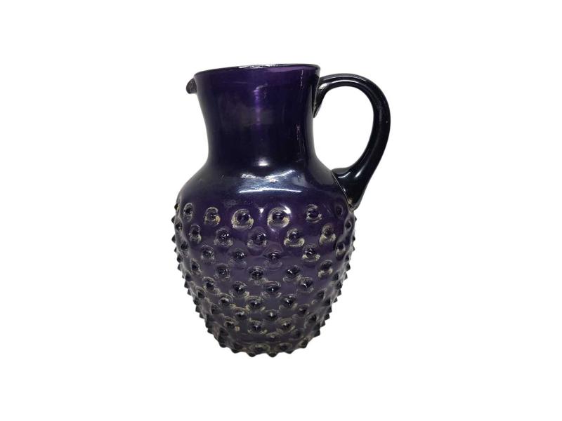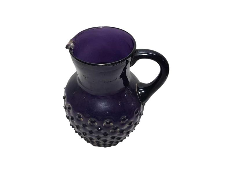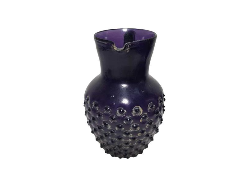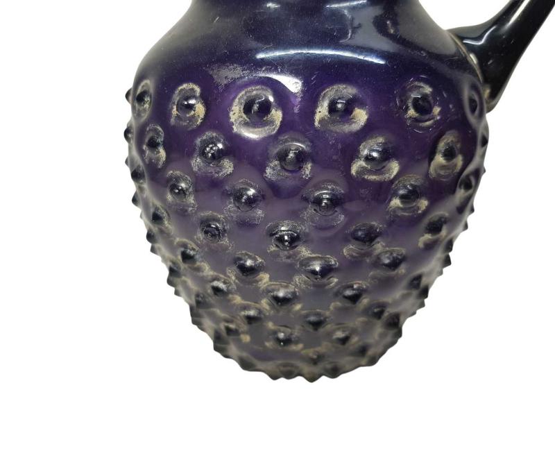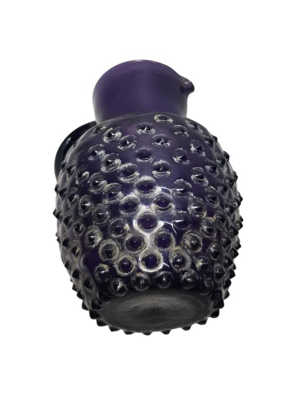 OSMANLI DÖNEMİ BEYKOZ İŞİ GÖVDESİ GİRİNTİ VE ÇIKINTILARLA SÜSLÜ EL YAPIMI MOR RENKLİ NADİR SÜRAHİ - KARAF. YÜKSEKLİK: 19 CM