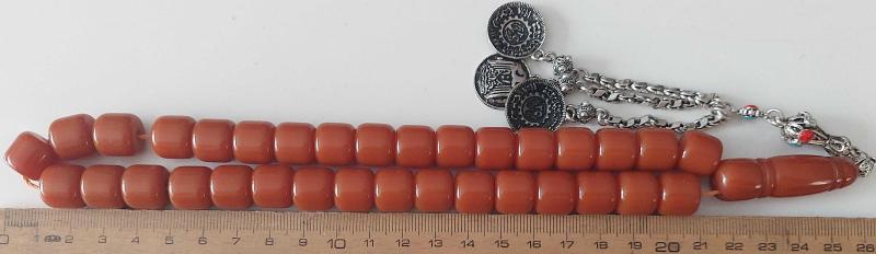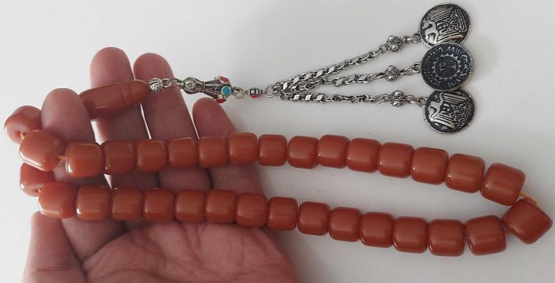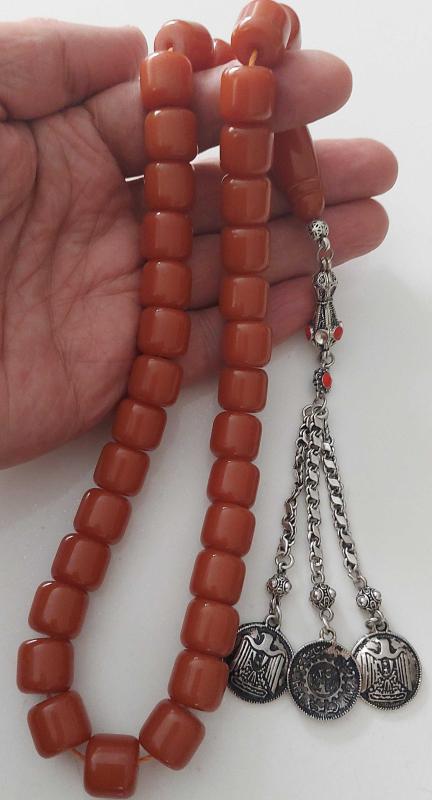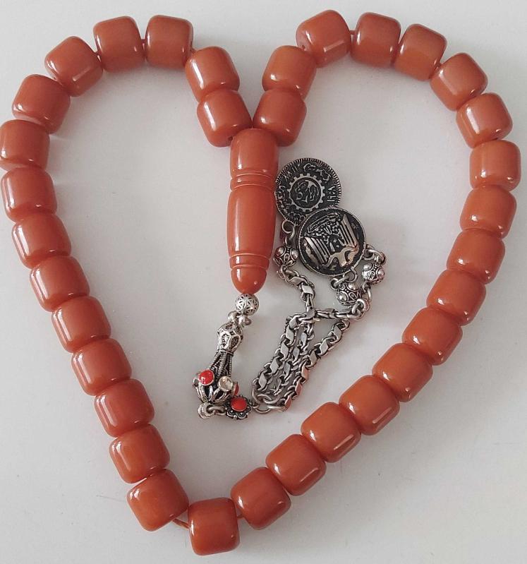 OSMANLI DÖNEMİ OBJEDEN YAPILMA BAL RENGİ MUHTEŞEM SIKMA KEHRİBAR TESPİH OLUP ESKİ DÖNEM GÜMÜŞ PÜSKÜLLÜDÜR. OBJE OSMANLI VEYA EVVELİ DÖNEME AİTTİR. YAPIMI 65-75 YILLIKTIR. RENK ALMASI DEVAM ETMEKTEDİR. ÇOK ÇOK NADİRDİR. ORİJİNALLİK TESTİ YAPILMIŞTIR. İLERİDE BULUNMASI VEYA ALINMASI ÇOK ZOR OLACAK TESPİHLERDENDİR. TAKLİDİ TESPİHLERLE KARIŞTIRMAYINIZ. HER TÜRLÜ TETKİK VE İNCELEMESİ YAPILMIŞTIR. İMAMELİ BOYU;25CM DİR. DANE ÇAPI;1X1,1CM DİR. PÜSKÜL BOYU;12,5CM DİR. AĞIRLIĞI;88,7 GRAMDIR. UYGUN FİYATLA SATIŞA SUNULMUŞTUR. DİĞER TIRI VIRI ÜRÜNLERLE KARIŞTIRMAYINIZ. RESMİNİ GÖRDÜĞÜNÜZ ÜRÜN AYNEN GÖNDERİLİR. TÜM ÜRÜNLERİMİZE BAKMANIZ MENFAATİNİZEDİR. SAYGILARIMIZLA.