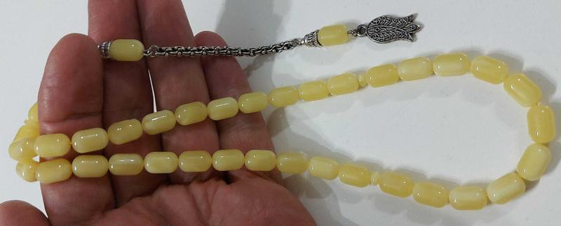OSMANLI DÖNEMİ OBJEDEN YAPILMA BEYAZ BULUTLU KREM RENGİ HARİKA DAMLA KEHRİBAR TESPİH İKİ YEDEK DANELİ GÜMÜŞ PÜSKÜLLÜ P1V1R1 NADİR, bir ay önce kitantik’te satışa sunulmuştur.