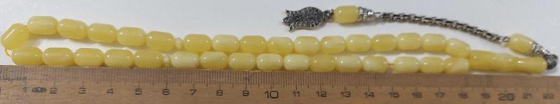 OSMANLI DÖNEMİ OBJEDEN YAPILMA BEYAZ BULUTLU KREM RENGİ HARİKA DAMLA KEHRİBAR TESPİH İKİ YEDEK DANELİ GÜMÜŞ PÜSKÜLLÜ P1V1R1 NADİR başlıklı antika/koleksiyon objesinin menşei belirtilmemiştir. 1950-1999 arası dönemine aittir.