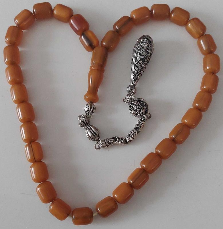 OSMANLI DÖNEMİ OBJEDEN YAPILMA HARDAL RENGİ SARMAL MUHTEŞEM SIKMA KEHRİBAR TESPİH GÜMÜŞ PÜSKÜLLÜ 3ĞĞ2BB1 ÇOK NADİR, dün kitantik’te satışa sunulmuştur.