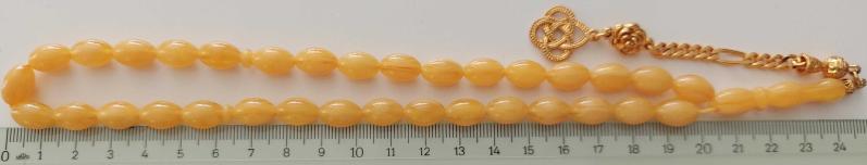 OSMANLI DÖNEMİ OBJEDEN YAPILMA MUHTEŞEM PORTAKAL SARISI ORİJİNAL DAMLA KEHRİBAR TESPİH SS2RR1 GÜMÜŞ ÜSTÜ ALTIN KAPLAMA PÜSKÜLLÜ başlıklı antika/koleksiyon objesinin menşei belirtilmemiştir. 1900-1949 arası dönemine aittir.