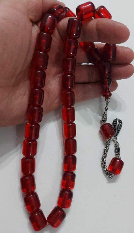 OSMANLI DÖNEMİ OBJEDEN YAPILMA PARLAK VİŞNE RENKLİ MUHTEŞEM SIKMA KEHRİBAR TESPİHTİR. YAPIM OBJESİ OSMANLI VEYA EVVELİ DÖNEME AİTTİR. YAPIMI 50-60 YILLIKTIR. RENK ALMASI DA HALEN DEVAM ETMEKTEDİR. ÇOK ÇOK NADİRDİR. ORİJİNALLİK TESTİ YAPILMIŞTIR. İLERİDE BULUNMASI VEYA ALINMASI ÇOK ZOR OLACAK TESPİHLERDENDİR. TAKLİDİ TESPİHLERLE KARIŞTIRMAYINIZ. HER TÜRLÜ TETKİK VE İNCELEMESİ YAPILMIŞTIR. İMAMELİ BOYU;30CM DİR. DANE ÇAPI;1,4X1.1CM DİR. PÜSKÜL BOYU;15,5 CM DİR. AĞIRLIĞI;95,3 GRAMDIR. PÜSKÜLÜ ESKİ DÖNEM OLUP KÜÇÜCÜK BAĞLANTILAR HARİÇ ZİNCİR DAHİL GÜMÜŞTÜR. UYGUN FİYATLA SATIŞA SUNULMUŞTUR. DİĞER TIRI VIRI ÜRÜNLERLE KARIŞTIRMAYINIZ. RESMİNİ GÖRDÜĞÜNÜZ ÜRÜN AYNEN GÖNDERİLİR. TÜM ÜRÜNLERİMİZE BAKMANIZ MENFAATİNİZEDİR. SAYGILARIMIZLA.