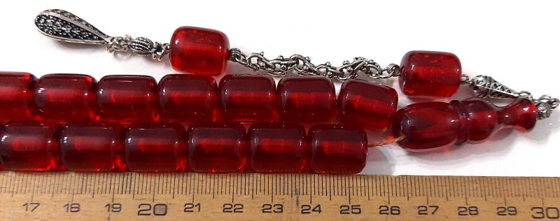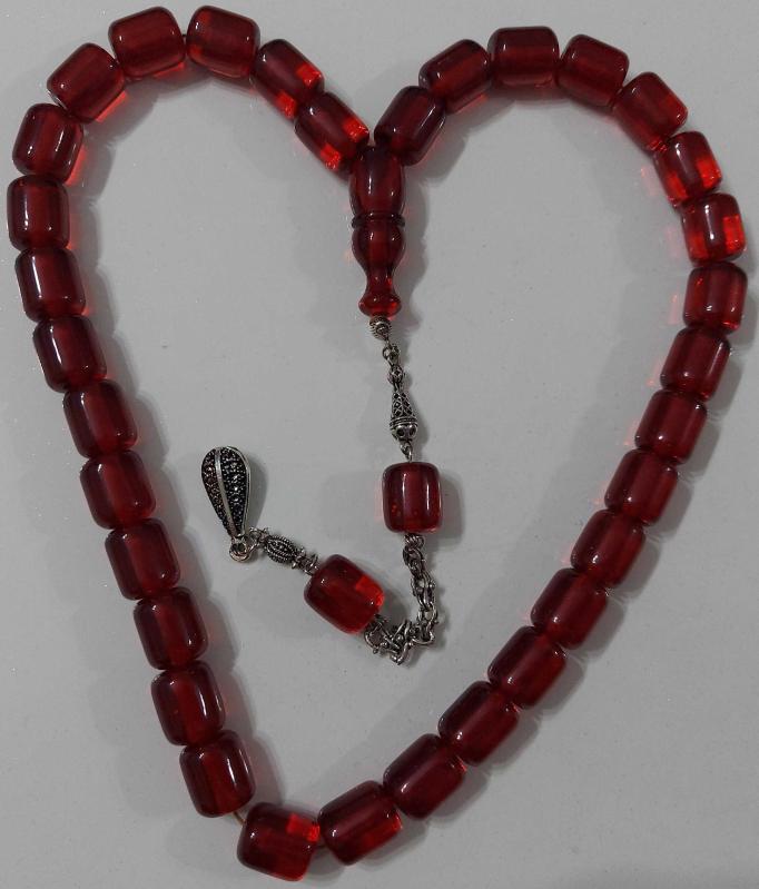 OSMANLI DÖNEMİ OBJEDEN YAPILMA PARLAK VİŞNE RENKLİ MUHTEŞEM SIKMA KEHRİBAR TESPİH GÜMÜŞ PÜSKÜLLÜ YEDEK DANELİ T3RR1A2 ÇOK NADİR başlıklı antika/koleksiyon objesinin menşei belirtilmemiştir. 1900-1949 arası dönemine aittir.