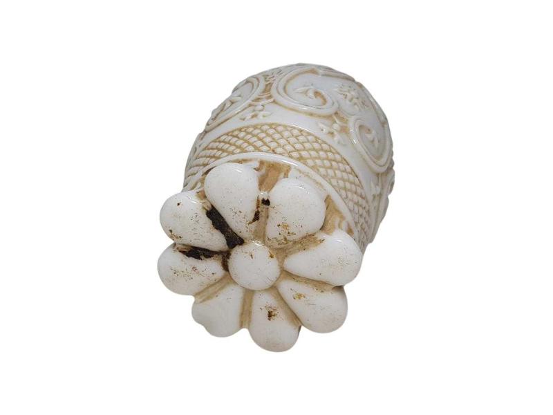 OSMANLI DÖNEMİ TAŞ OPALDEN MAMÜL, ÜZERİ KBARTMA DESENLERLE SÜSLÜ LAMBA HAZNESİ. YÜKSEKLİK: 14 CM