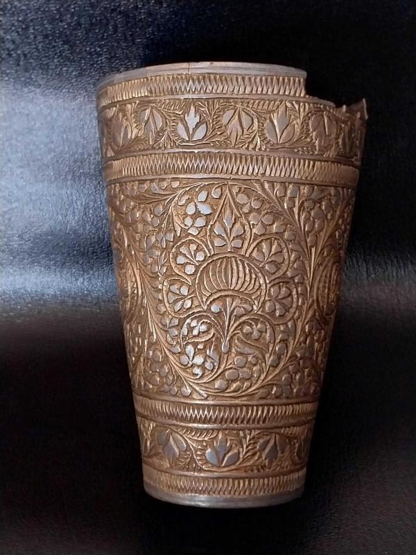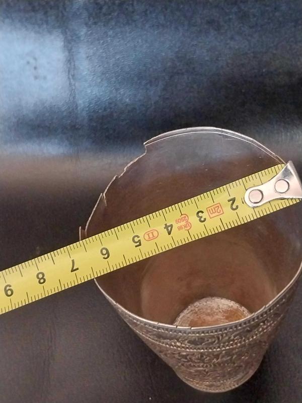 OSMANLI DÖNEMİ ORİJİNAL HİCAZ İŞİ ZEMZEM, ŞERBET BARDAĞI..ALTIN VERMEY SIVAMA, AĞIZ KISMINDA ZAMANIN YORGUNLUĞU İLE KIRIK/EKSİK VAR, KOLEKSIYON DEĞERİ YUKSEK, NADİR BİR ÜRÜNDÜR..