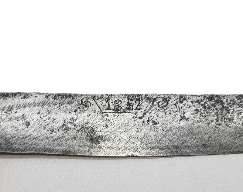 OSMANLI DÖNEMİ, BOYNUZ SAPLI, NAMLUSUNUN BİR YÜZÜNDE FLORAL DESENLER ARASINDA HAÇ FİGÜRÜ İLE DİĞER YÜZÜNDE 1852 TARİH BULUNAN YÜKSEK KONDİSYONDA SALDIRMA. UZUNLUK: 34,7 CM