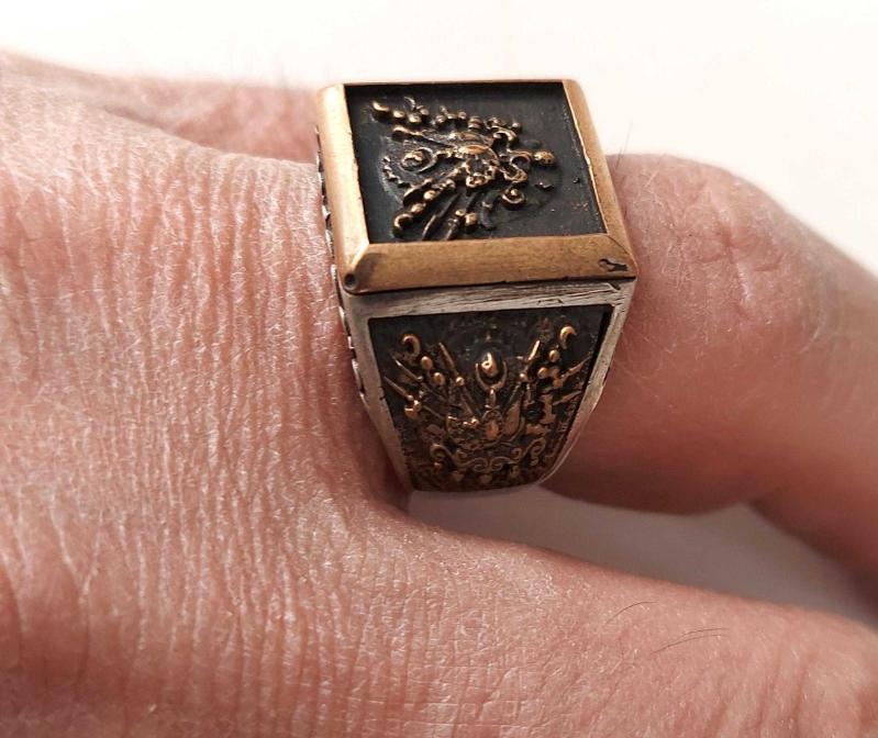 OSMANLI DÖNEMİ SARI AKSAMLAR ALTIN KAPLAMA MÜTHİŞ MOTİFLİ ORİJİNAL OSMANLI TUĞRALI MUHTEŞEM GÜMÜŞ YÜZÜK 2OOO1A1 ÇOK NADİR başlıklı antika/koleksiyon objesinin menşei belirtilmemiştir. 1900-1919 arası dönemine aittir.