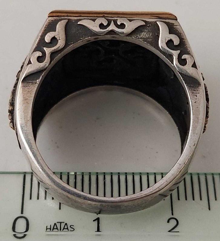 OSMANLI DÖNEMİ SARI AKSAMLAR ALTIN KAPLAMA MÜTHİŞ MOTİFLİ ORİJİNAL OSMANLI TUĞRALI MUHTEŞEM GÜMÜŞ YÜZÜKTÜR. EL YAPIMI OLUP USTALIK MUHTEŞEMDİR. DİĞER TIRI VIRI ÜRÜNLERLE KARIŞTIRMAYINIZ. ÇAPI;1,9 CM DİR. AĞIRLIĞI;13,5 GRAMDIR. UYGUN FİYATLA SATIŞA SUNULMUŞTUR. TÜM ÜRÜNLERİMİZE BAKMANIZ MENFAATİNİZEDİR. SELAM VE SAYGILARIMIZLA.