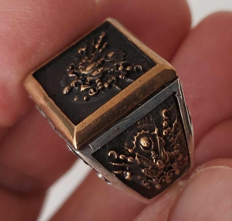 OSMANLI DÖNEMİ SARI AKSAMLAR ALTIN KAPLAMA MÜTHİŞ MOTİFLİ ORİJİNAL OSMANLI TUĞRALI MUHTEŞEM GÜMÜŞ YÜZÜK 2OOO1A1 ÇOK NADİR, en son 11 ay önce güncellenmiştir.