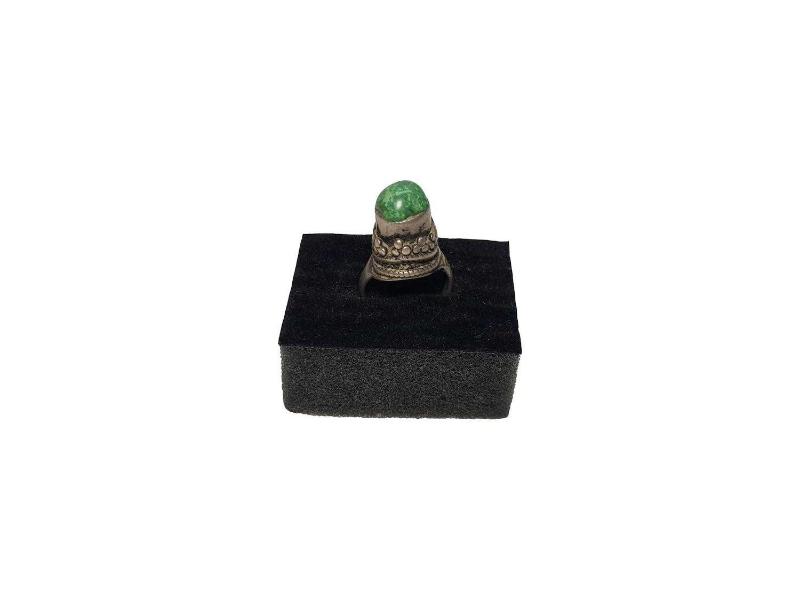 OSMANLI DÖNEMİ TACI MEVEVİ SİKKESİ FORMLU YEŞİM TAŞLI YÜKSEK AYAR GÜMÜŞ YÜZÜK. İÇ ÇAP: 18 MM YÜZÜK NUMARASI: 17 (YÜZÜK GENİŞLEYEBİLİR FORMLUDUR.) AĞIRLIK: 12 GRAM