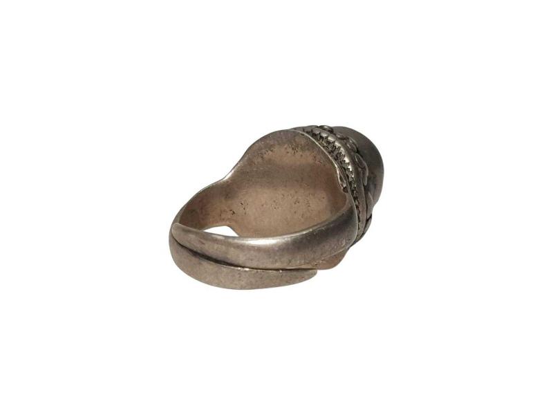OSMANLI DÖNEMİ TEKKE İŞİ GÜMÜŞ YÜZÜK başlıklı antika/koleksiyon objesi Osmanlı menşe’lidir. 1900-1919 arası dönemine aittir.
