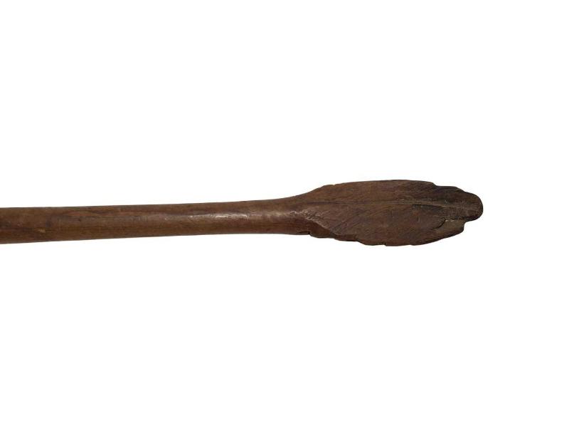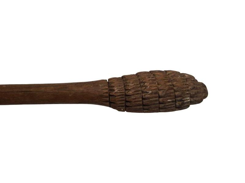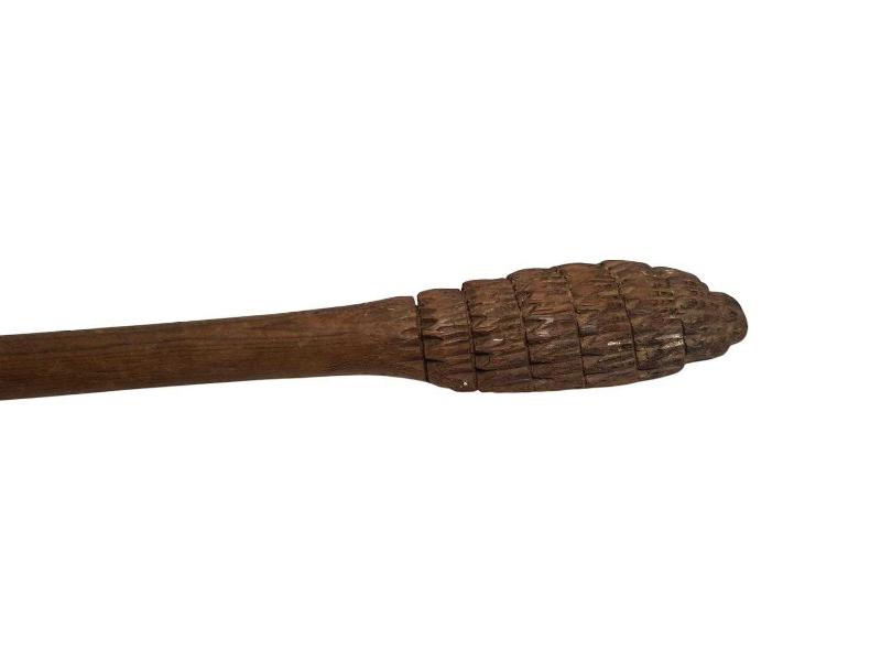 OSMANLI DÖNEMİ AHŞAPTAN MAMÜL SAP UCU MEVLEVİ SİKKESİ FORMLU SIRT KAŞIYICI. UZUNLUK: 41CM