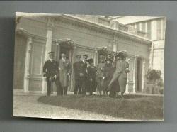 ** YABANCILAR,HANIMLAR,FESLİ BİR ADAM FOTOĞRAFI ** Küçük ebatta tertemiz bir eski fotoğraf.. Subaylar biri denizci olmak üzere sanıyorum hepsi yabancı.. Hanımlar da onların hanımları olabilir.. Bir de fesli beyefendi karışmış aralarına.. Yer ve zaman bilgisi mevcut değil...